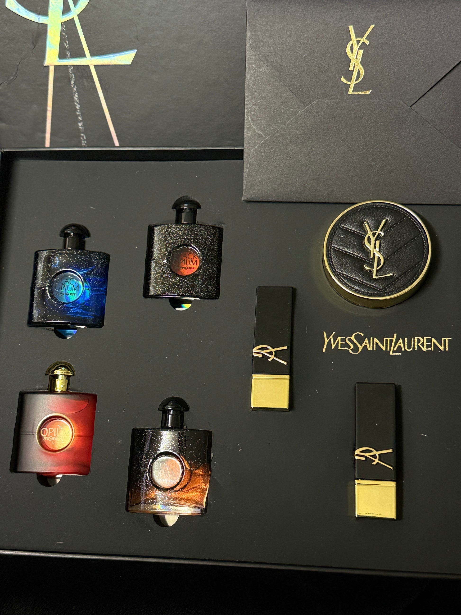 7pcs Calendar set Y S L with 4 mini perfume, 2 lipstick and 1 foundation